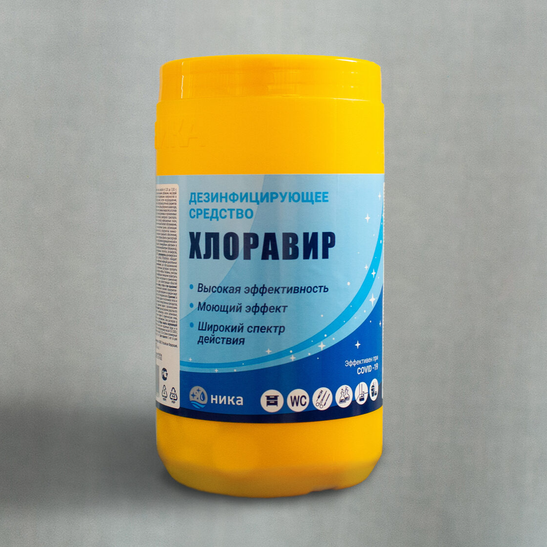 Средство «Хлоравир» обладает антимикробным действием в отношении бактерий (включая микобактерии туберкулеза), вирусов (возбудителей полиомиелита, энтеровирусных инфекций, Коксаки, ЕСНО, энтеральных и парентеральных гепатитов, ВИЧ-инфекции; гриппа и др. ОРВИ, «птичьего гриппа H5N1», герпетической, аденовирусной и др. инфекций), грибов рода Кандида, дерматофитов. Срок годности средства в невскрытой упаковке производителя – 5 лет. Срок годности рабочих растворов средства — 5 суток. Дезинфицирующее средство «Хлоравир» содержит в качестве действующего вещества натриевую соль дихлоризоциануровой кислоты, а также ПАВ, что придает растворам средства моющий эффект. Выпускается в виде таблеток белого цвета с характерным запахом хлора. массой 3,4г Сре