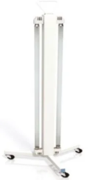 Основание-каркас — опорная стойка с ручкой выполнено из металлического профиля, покрытого полимерно-порошковым покрытием, наиболее устойчивым к различным дезинфицирующим растворам. Облучатель бактерицидный передвижной открытого типа, состоит из стойки с ручкой, расположенной перпендикулярно по отношению к поверхности пола, панели управления; от четырех бактерицидных ламп и корпусов для ламп. Опорная стойка с ручкой установлен на 4самоориентирующиеся колеса с диаметром 50 мм. Конструкция облучателей обеспечивает доступность, легкосъемность и взаимозаменяемость деталей, сборочных единиц при техническом обслуживании и ремонте. Источники излучения являются лампы ртутные бактерицидные газоразрядное низкого давления.